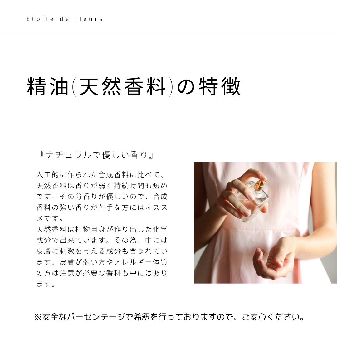 天然香料である精油をブレンドしており、優しいフローラルの香りが心地よく漂います。
